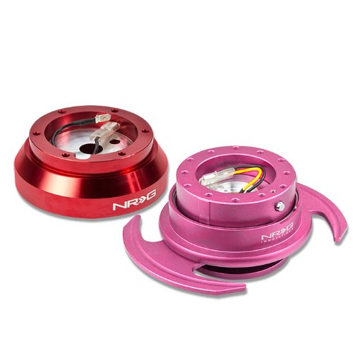 NRG-SRK-140H-RD+650PK, NRG Innovations Steering Wheel 6-Hole Aluminum Ball Bearing Short Hub Adapter with Gen 3.0 with Handle Pink Quick Release SRK-140H?NRG Quick Release features many options that conventional ball-locking quick release system do not. It is specially engineered with raised sections to prevent the scratching and stretching of the hub while a self locking feature adds increased safety and functionality. Features racing styled for added style and look. Each unit is made from the highest quality aircraft grade aluminum and is anodized for maximum durability and finish.
