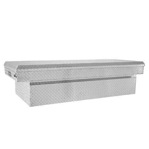 Heavy-duty diamond-tread aluminum. Made in the USA. Fits mini-, mid-size, and some full-size pickups. Wide-opening lid with gas shocks. Removable sliding tray with dividers. One-touch rotary locking mechanism. No-drill installation; hardware included.